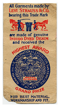 Around 1915 LS&Co.; started hanging a small paper label from one of the suspender buttons on the waist overalls. This label, which was carried over into the early 1920s, advertised the fact that LS&Co.; had won prizes at the 1915 Panama-Pacific International Exposition.Design Details