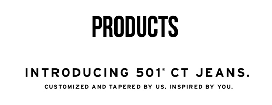 สร้างสรรค์ยีนส์ในแบบฉบับของตนเอง เพราะลีวายส์® 501®CT ปรับแต่งและทำเข้ารูปให้คุณ โดยมีคุณเป็นแรงบันดาลใจ